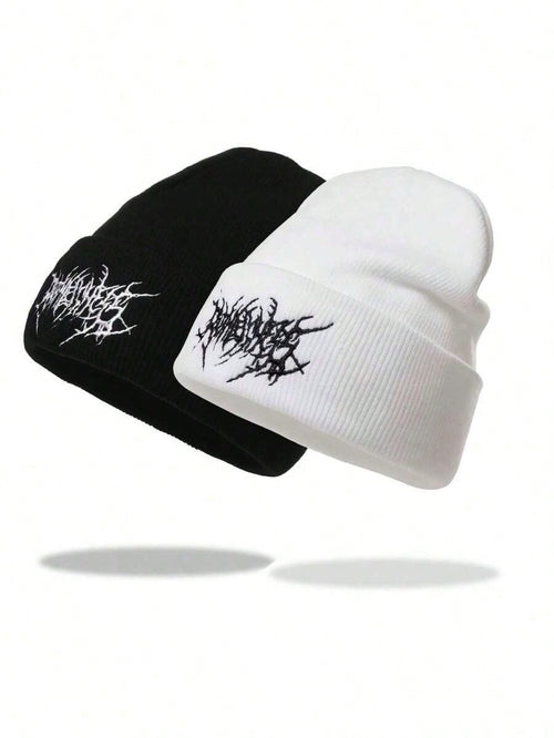 2pc gothic style men embroidered scarf knitted beanie, warm and versatile cold weather cap
